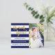 Chic Gold | Bold Blue Stripe Photo Thank You Postcard