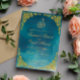 Chic Gold Border Turquoise Islamic Muslim Wedding Invitation