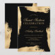 A modern, pretty chic and elegant yellow gold metallic foil brushstroke on black Sweet 16 birthday party invitation .