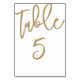 "Modern and unique table number card featuring large handwritten-style calligraphy in elegant faux gold on a crisp white background. Perfect for weddings, bridal showers, engagement parties, and other special events, this minimalist yet stylish design adds a touch of sophistication to your reception décor. Easily pair with other coordinating table numbers and wedding stationery in this collection for a cohesive and elegant look.