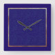 Chic Gold Cobalt Abstract Floral Frame Square Wall Clock