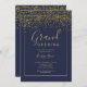 Chic gold confetti navy typography grand opening invitation