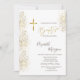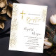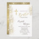 Chic Gold Cross Baptism Gold Glitter Confetti Invitation