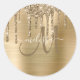 Chic Gold Dripping Glitter Brushed Metal Monogram Classic Round Sticker