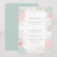 This wedding invitation is perfect for a stylish couple. Featuring watercolor painterly brush strokes in pastel pink, blue and ivory. With delicate faux gold foil dust making the invitation more chic. Your wedding details are displayed with an elegant contemporary typography. Ideal for spring as well as summer celebrations.