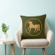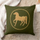 A chic and customisable Throw Pillow or Scatter Cushion, with a gold-effect horse motif on a dark Mossy Green background that you can change if you wish. The horse motif is from a hand-painted illustration by Judy Adamson.