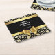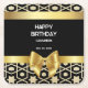 This elegant birthday coaster design features a gold Egypt geometric pattern with a gold bow ribbon on a black background.