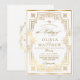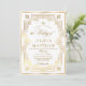 Modern stylish blush pink and gold modern wedding invitation with an elegant handwritten font with curls and a monogram of the bride and groom. Classy and elegant, simple and modern invitation.