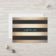 Black horizontal stripes accented by realistic digital image of shiny gold leaf background. A simple and affordable Christmas giftcard for the holiday season.