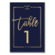 Chic gold frame script navy blue table number