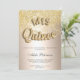 Mis quince written with gold balloons style cut out letter typography.A modern, pretty chic and elegant rose gold glitter shower ombre with gold foil brushed metallics colour block Quinceañera birthday party invitation .