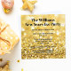 Chic New Years Eve party invitation with elegant black script over gold glitter. A glamourous invite to ring in 2025. Customise these trendy, modern invites for your gala.