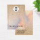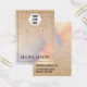 This earring display card features a pinstripe black border, a place to add your logo, and matching simple but elegant black typography on a faux printed gold glitter with pink, peach, blue, and purple iridescent holographic ombre gradient glamourous and chic background. On the back, it includes contact information that can be changed completely or personalised to your details. It's a professional, elegant, and stylish way to display your product with pride. (earring holes are printed markers only, puncturing must be completed by the customer)