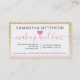 Elegant yellow gold glitter sparkles pastel blush pink script makeup hair pink heart loyalty card with modern hand lettering style brush typography on white , a simple, professional and minimalist card. offer 10 treatments and discount to your customers.