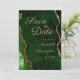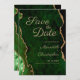 Elegant save the date card with emerald green marble agate with gold glitter wedding save the date card.