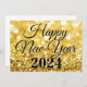 Happy New Year in elegant black typography over gold glitter. Chic sparkle card for a company New Years wishes for a wonderful 2024. Customise with your business name for your clients or employees on these modern holiday cards.