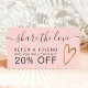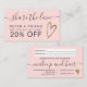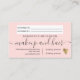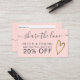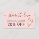 Makeup hair girly blush pink heart script font share the love professional referral card. the hearts are in faux gold foil.