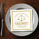 This chic gold custom law school graduation party paper napkin features modern typography for a class of 2025 graduate. Customise with your graduating year under the scales of justice symbol for this great personalised lawyer or attorney gift of congratulations.