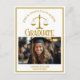 This chic gold custom law school graduation announcement postcard features modern typography for a class of 2025 graduate above your student photo. Customise with your graduating year under the scales of justice symbold and photograph for a great personalised lawyer or attorney postcard.