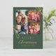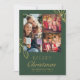 scriptgoldfamily greetingsmerry christmaselegantgreen gold classic christmas cardfoliageplaid3 family photoschic classy