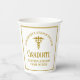 This chic gold custom medical school graduation party paper cups features modern typography for a class of 2025 nursing graduate. Customise with your graduating year under the medical caduceus for great personalised nurse or doctor decor.