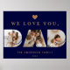 Chic Gold Navy Blue Custom Three Dad Script Photos Poster