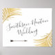 Directional arrow sign for tropical destination beach wedding with printed gold faux foil tropical palm leaves (also resembles feathers). Perfect elegant or formal beach wedding theme reception decor. Personalise as you wish with your own message. Visit our designer store for coordinating wedding posters, other wedding reception items, and more colour variations. • • • • • • Click CUSTOMIZE to change the arrow direction, background colour, text colour and fonts. • • • • • •