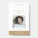 This chic gold photo small business or teacher ID badge makes the perfect employee ID name tag! The simple design features classic minimalist gold and white typography with a rustic boho feel. Customisable in any colour. Personalise with your company name, an employee photo, name, title or department, QR code, employee ID number and more!