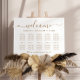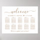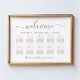 Elegant downloadable wedding seating chart poster for up to 10 tables that features "welcome" in a chic script with swashes, your names and wedding date joined together by a heart and "We're so glad you're here" in classic serif typography. If desired, select the digital download option to edit with last minute changes and print locally.