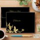 Chic gold script monogram floral black wedding envelope
