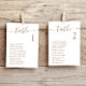 Chic wedding table seating chart card featuring "table" in an elegant gold script with swashes, the table number in classic gold serif typography and your guests' names in simple modern typography. Create each table seating chart individually and add to your shopping cart one at a time, then check out once all tables are in your cart.