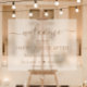 Chic wedding welcome frosted acrylic sign featuring "Welcome To Our Happily Ever After" in modern gold typography and an elegant gold script with swashes, "We're so glad you're here," your first names joined together by a heart and your wedding date.