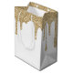 Chic Gold Sparkle Glitter Drips Medium Gift Bag