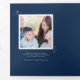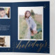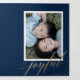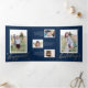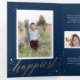 This unique tri-fold holiday design features a dark blue background with faux gold foil stars and typography. The front cover is simply a single vertical photo. As you open the card you see a single square photo with your main holiday text. As you fully open the card you see one photo on the left, one photo on the right, and in the middle are three smaller horizontal photos with personalised text. The greeting on the inside says "Happiest Holidays" in faux gold foil script with more stars. The back of the card is blank but you could easily add another photo or more text. This design is a perfect choice for a chic and elegant message of Christmas joy. The multi-photo layout allows you to upload a total of SEVEN of your favourite family photos in various sizes. The look is modern yet elegant.