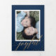 Chic Gold Stardust Tri-fold Navy Christmas Photo Invitation