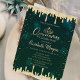 Chic Gold Tiara,Glitter Drips Green Quinceañera Invitation
