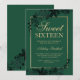 A modern, pretty chic and elegant faux gold typography Floral green sweet 16 birthday invitation with hand painted green watercolor leaf foliage. The green colour background is fully customisable