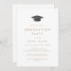 This chic gold typography grad cap graduation party invitation is perfect for a modern outdoor party. The simple design features classic white and yellow gold typography with a black and gold watercolor graduation hat.