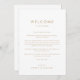 These chic gold typography wedding welcome letter & itinerary cards are perfect for a modern wedding. The simple design features classic minimalist gold and white typography with a rustic boho feel. Customisable in any colour. Keep the design minimal and elegant, as is, or personalise it by adding your own graphics and artwork. The front of the card features a welcome letter and the back of the card features the wedding itinerary. These notes are perfect for destination weddings and hotel guest welcome bags.