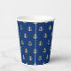 Chic Gold Yellow Nautical Anchors Pattern On Blue Paper Cups