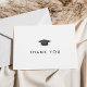 This chic grad cap graduation thank you card is perfect for a modern graduation party. The simple design features classic minimalist black and white typography with a black and gold watercolor graduation hat.