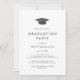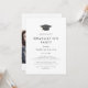 This chic grad cap photo double graduation party invitation is perfect for a modern outdoor party. The simple design features classic minimalist black and white typography with a black and gold watercolor graduation hat.
