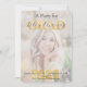 Celebrate your grad in style with this chic photo overlay party invitation. A casual photo of him or her softened with a sheer vellum overlay. Bold ombre gold text "grad and 2023" with trendy script name and simple party ingo completes this minimal elegant Graduation Party Invite.