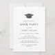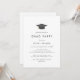 This chic graduation cap grad party invitation is perfect for a modern outdoor party. The simple design features classic minimalist black and white typography with a black and gold watercolor graduation hat.