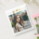 These chic graduation party favour bags feature sophisticated handwritten black script over a trendy full photo of your graduate. Customise these modern grad favours with your grad name over their full senior photograph.