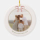 Celebrate the season with this chic grandmillennial coquette christmas round ceramic ornament, featuring a pink coquette bow. A vintage-inspired touch of nostalgic charm, mixing granny chic vibes with festive fun. The simple, sweet layout brings a warm, wimsy feel to your holiday greetings. Please feel free to reach out with any questions regarding the product's design; we are happy to help!