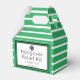 Perfectly classic green and pink seersucker striped hangover relief kit favour box that is customisable.