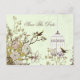 Chic green bird cage, love birds save the dates announcement postcard