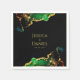 A chic ink washed design with jewel-toned emerald green, black and gold details. This elegant wedding napkin features an artistic wash of alcohol ink in vibrant green and gold. Easily add your bride and groom name plus the wedding date to the template using Zazzle's customisation tool. Please contact us via Zazzle Chat if you require assistance. Chic Green Black Gold Wedding Napkins.