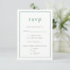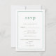A delicate green colour scheme creates a chic romantic feel to these vintage meets modern wedding RSVP cards. The front features modern typography in a buttoned-up layout while the back pops with ditsy floral blooms. Customise to your own event and pair with the coordinating suite pieces.